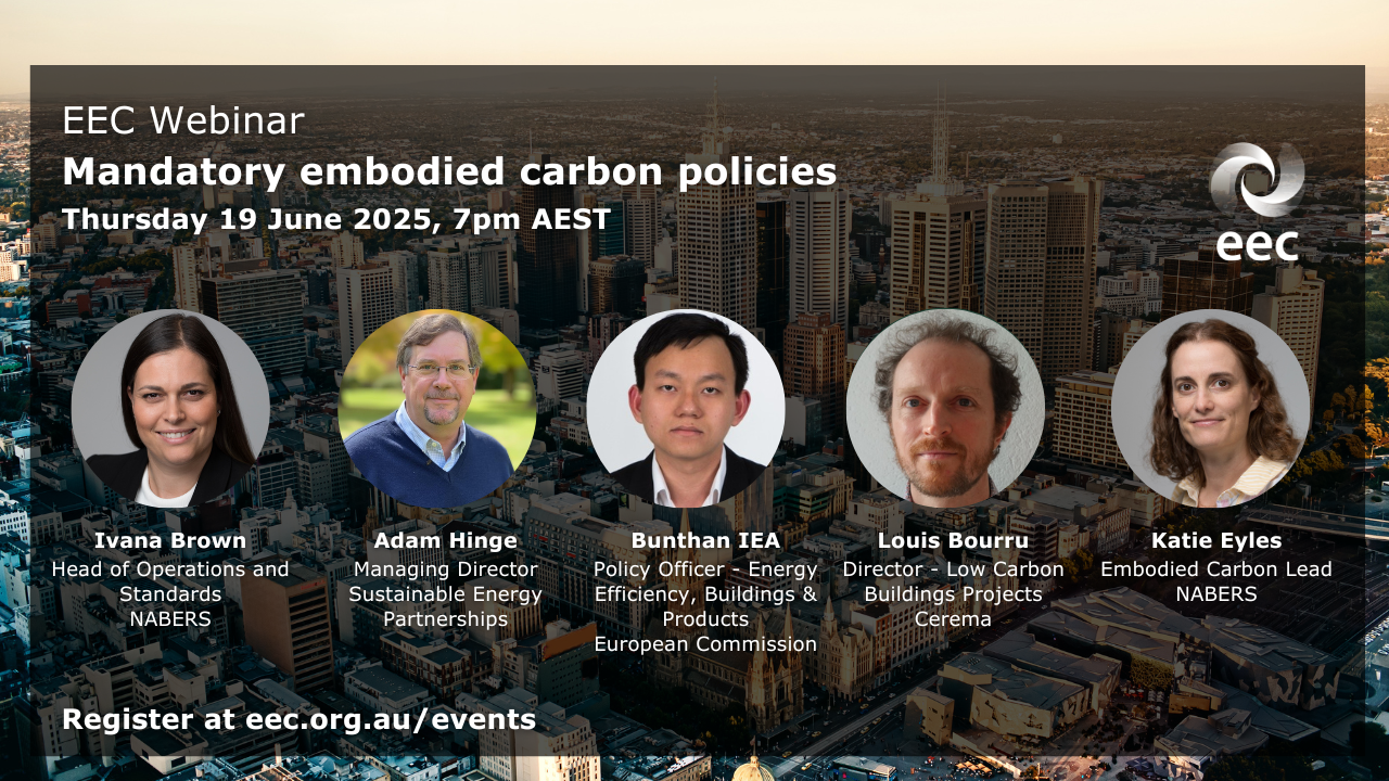 The webinar will be chaired by Julianne Tice, Buildings Policy Advisor at the Energy Efficiency Council, with guests: